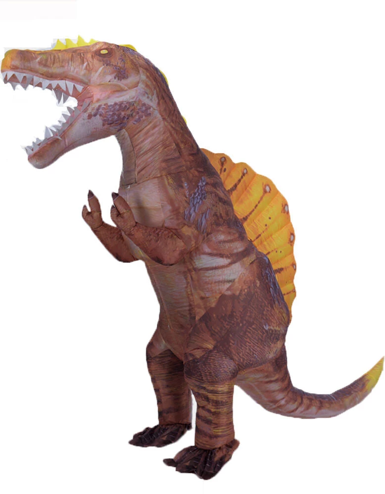 The inflatable Brown Spinosaurus is a one size fits most costume for height 5’2″-6′(160-185cm)