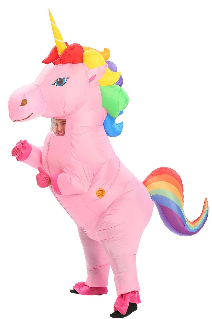 The inflatable unicorn is a one size fits most costume for height 5’2″-6′(160-185cm)