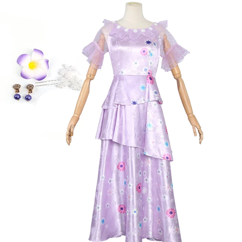 Isabela, the girl with the magic to make plants grow blossom. It is perfect for Ecanto parties and Halloween. Encanto costumes are great family costumes.
