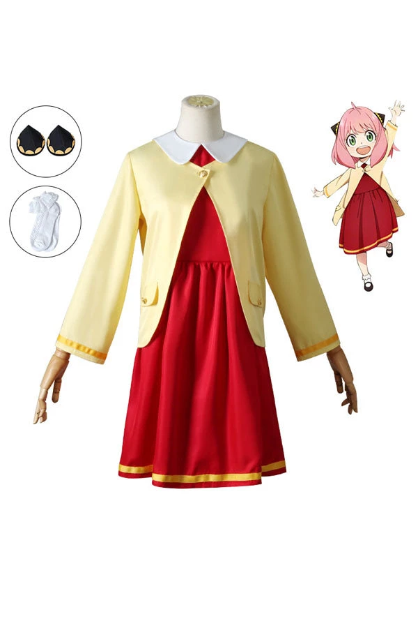 Contains: Anya Forger A-line Dress, Yellow Coat, Socks And Headwear.