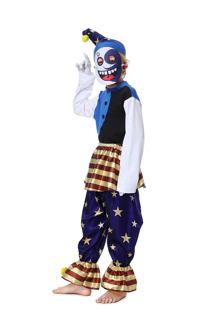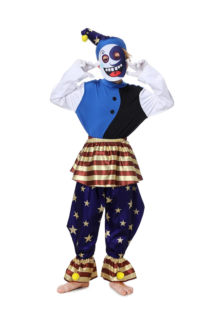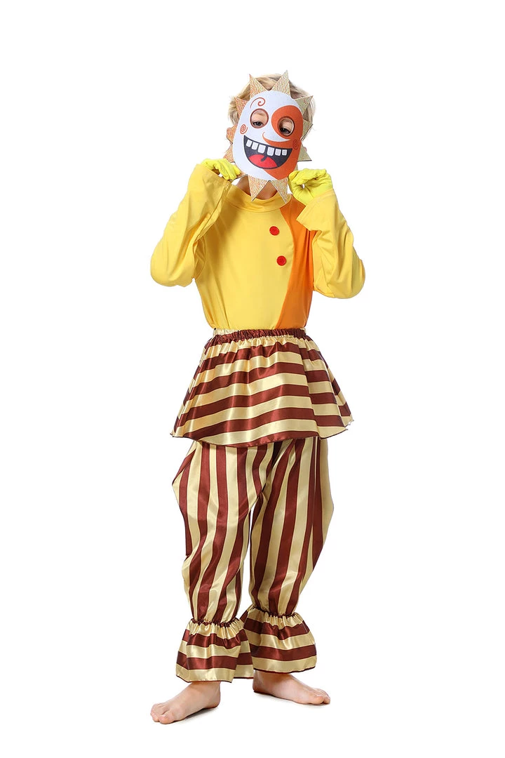 The two jester like characters in fnaf. Both sunrise and moondrop costumes includes a shirt, pants, mask and gloves. Moondrop costume comes with a sleeping cap.