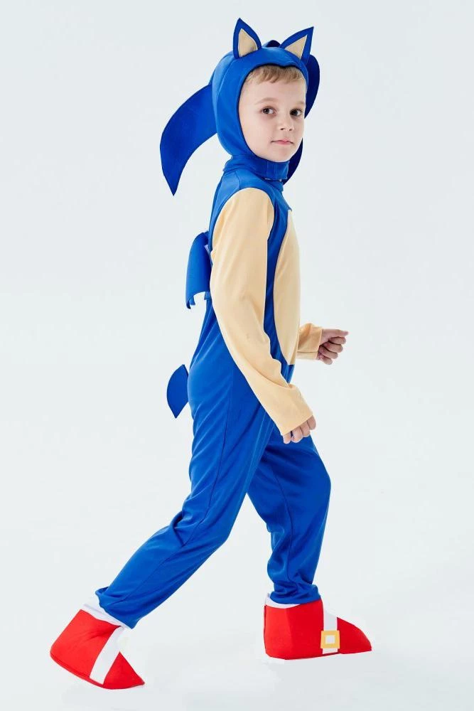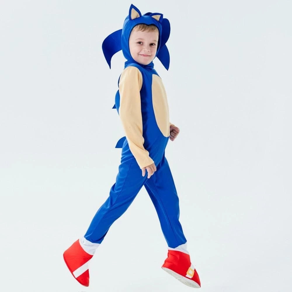 Sonic the hedgehog costume for kids. The costume comes with a jumpsuit, a headpiece and shoe covers.