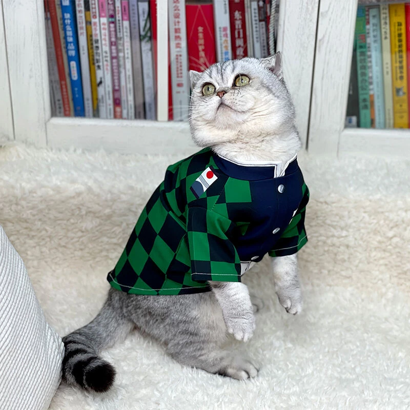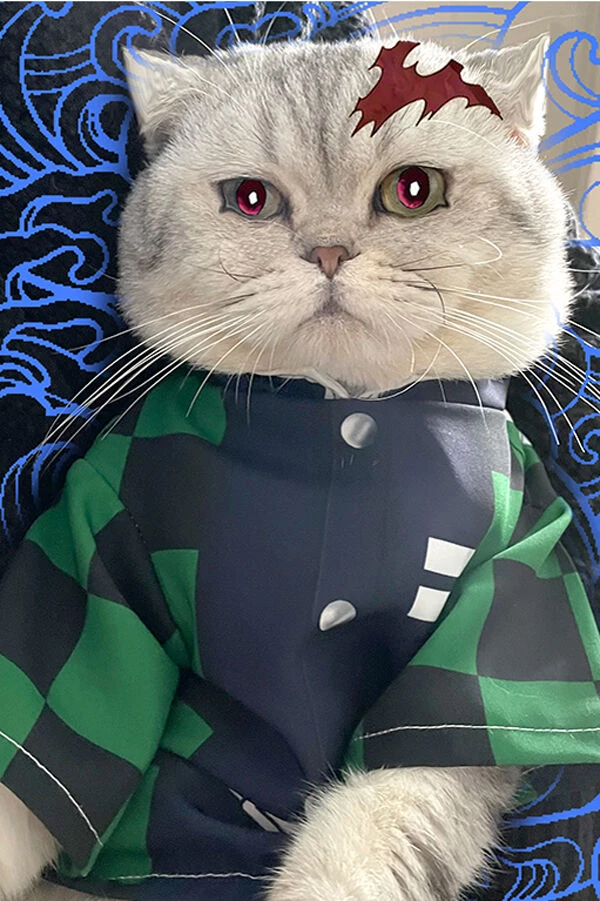 Soft polyester fabric Tanjiro costume for cats and small dogs. You baby will be so adorable in it.