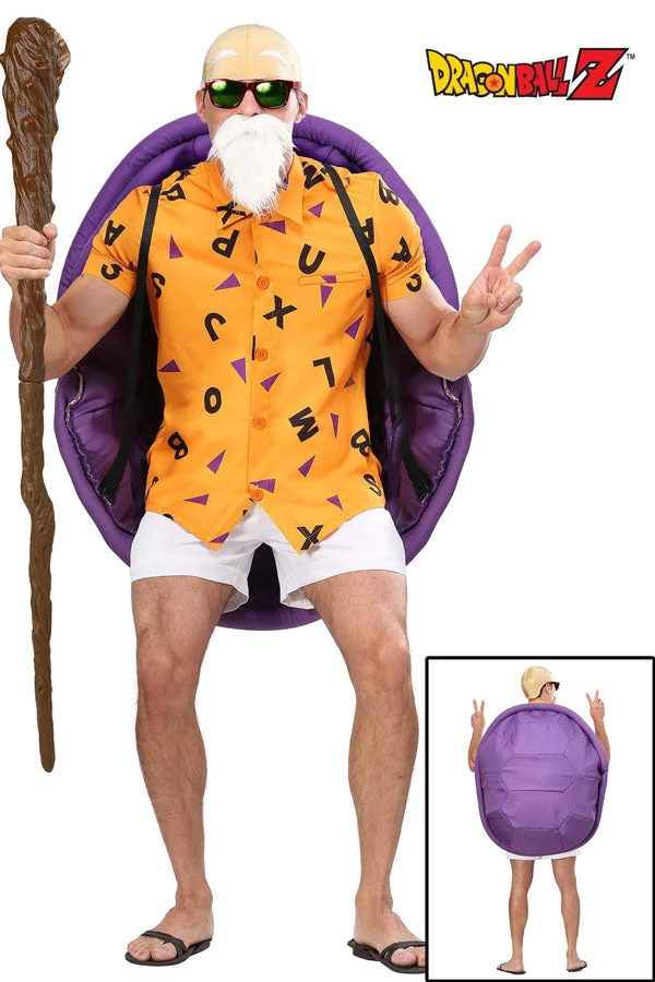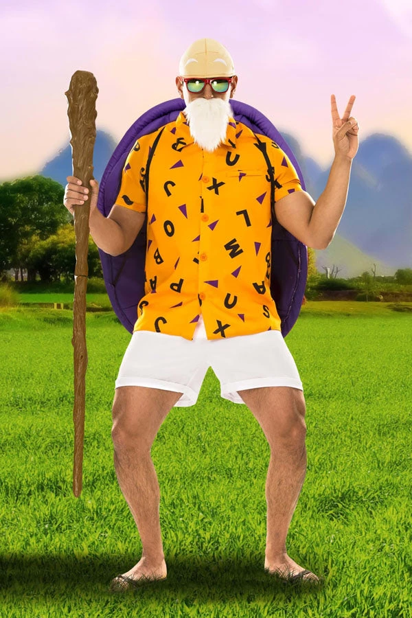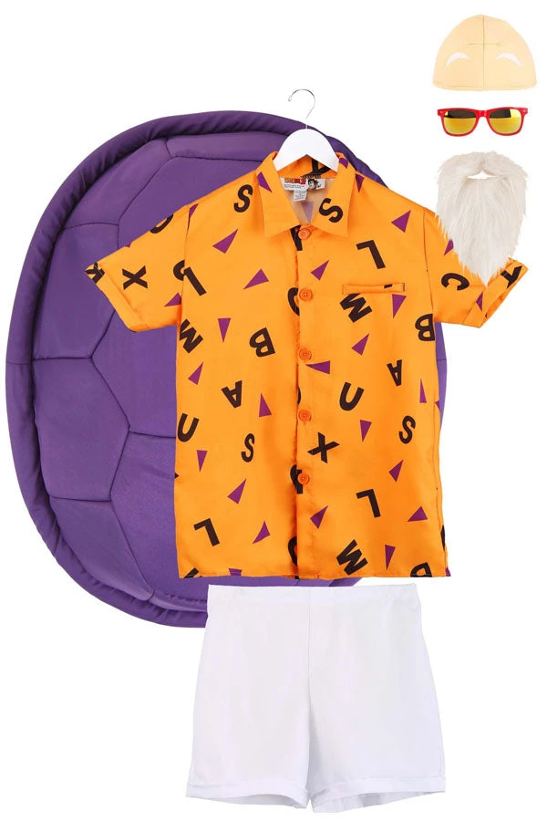 Roshi Men’s costume included: shirt+shorts++bald cap+facial hair+sunglasses+turtle shell