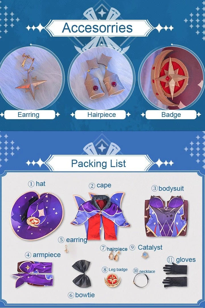 Premium quality Genshin impact mona cosplay costume with beautiful details. You will get the perfect mona cosplay result with this outfit. Please refer to measurement before purchase.