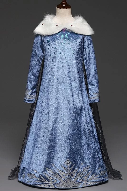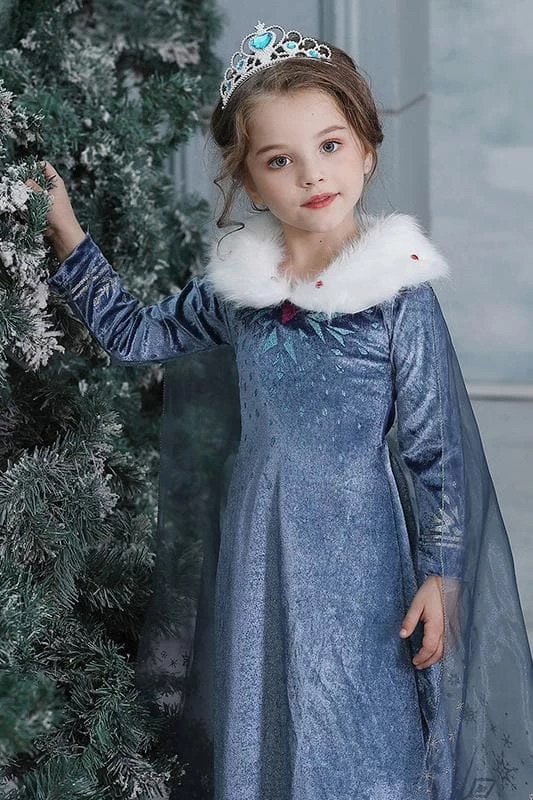 Hallowitch Costumes Girls’ Olaf’s Frozen Adventure Elsa Dress With Faux Fur Collar