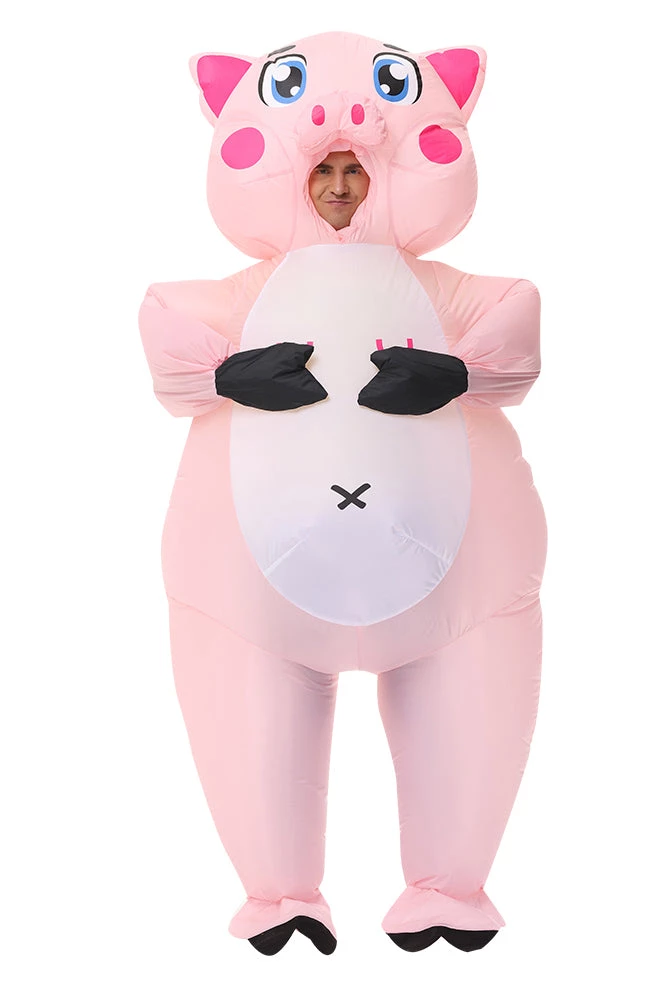 Lovely inflatable pig costume for adults. It has a lovely puffy head. Inflatable costumes are easy to blow up and deflate. They are funny and you can use it for Halloween and any parties or events.