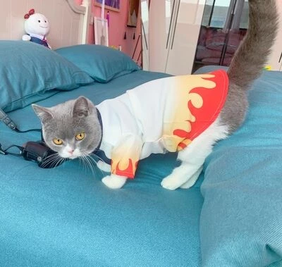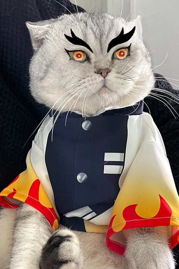 Soft polyester fabric Kyojuro Rengoku costume for cats and small dogs. You baby will be so adorable in it.
