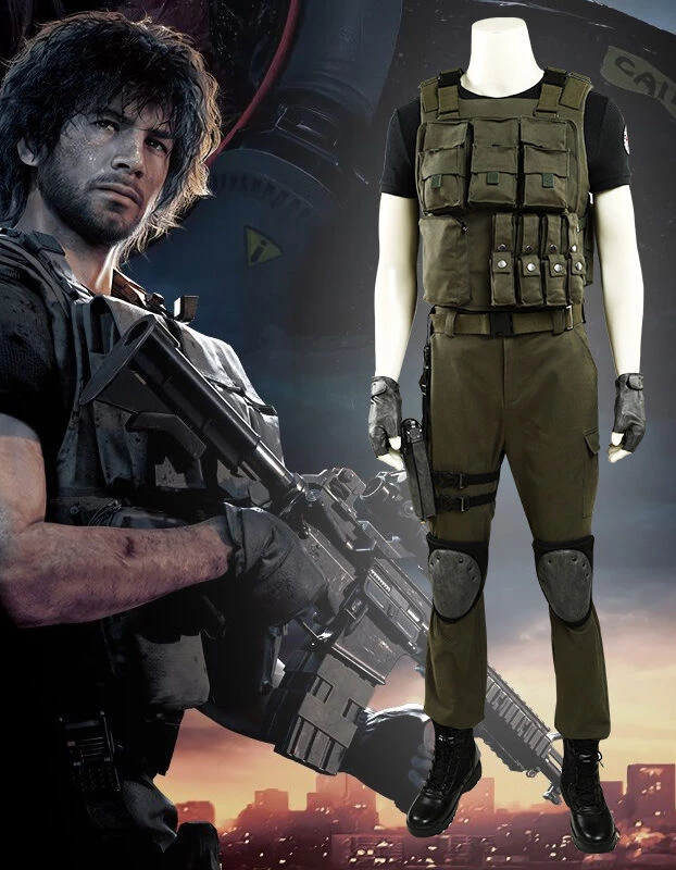 Resident Evil 3 Remake Carlos Oliveira men uniform outfit Halloween carnival costume cosplay costume