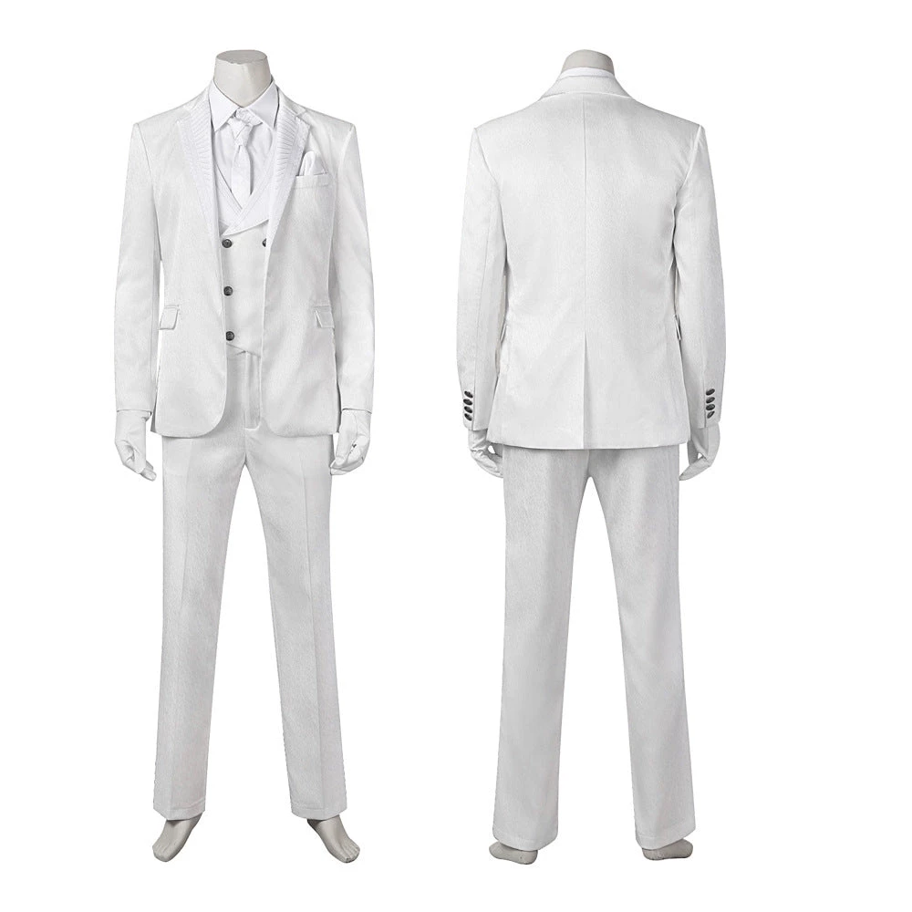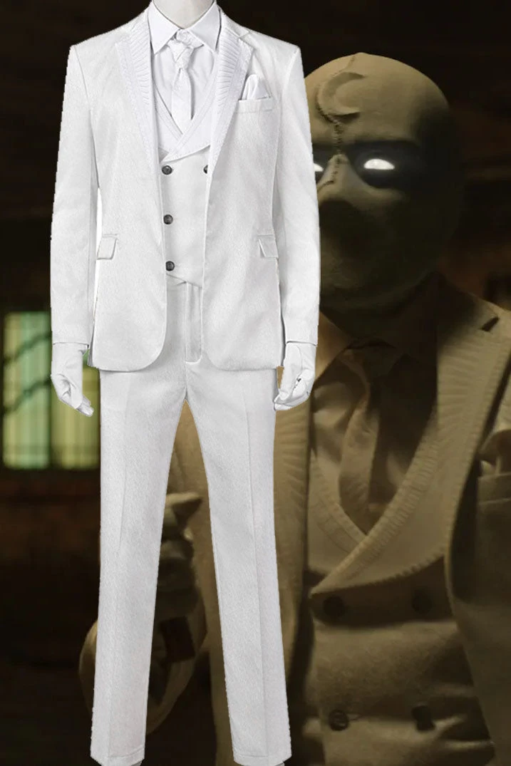 Realistic Moon Knight white suit costume as seen in 2022 TV series.
