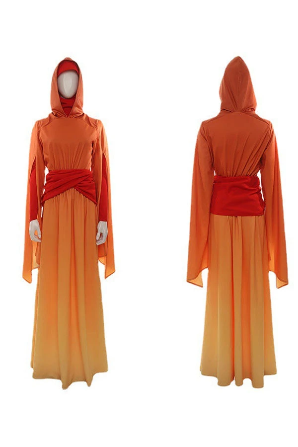 Queen Padme Amidala cosplay outfit. It is a hooded dress with gradiant color.